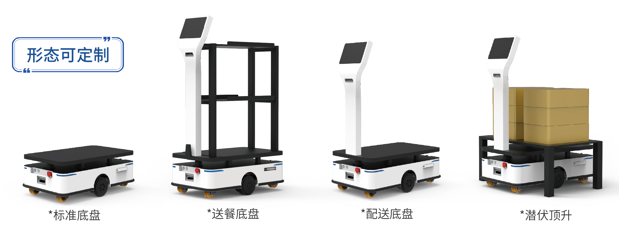 灵活扩展、按需定制:提供标准底盘、送餐底盘、配送底盘、潜伏底盘等多种上装模块,并可快速适配料架、货架、生产线接口,实现与现有生产流程的无缝对接,灵活应对不同载具和工艺要求。